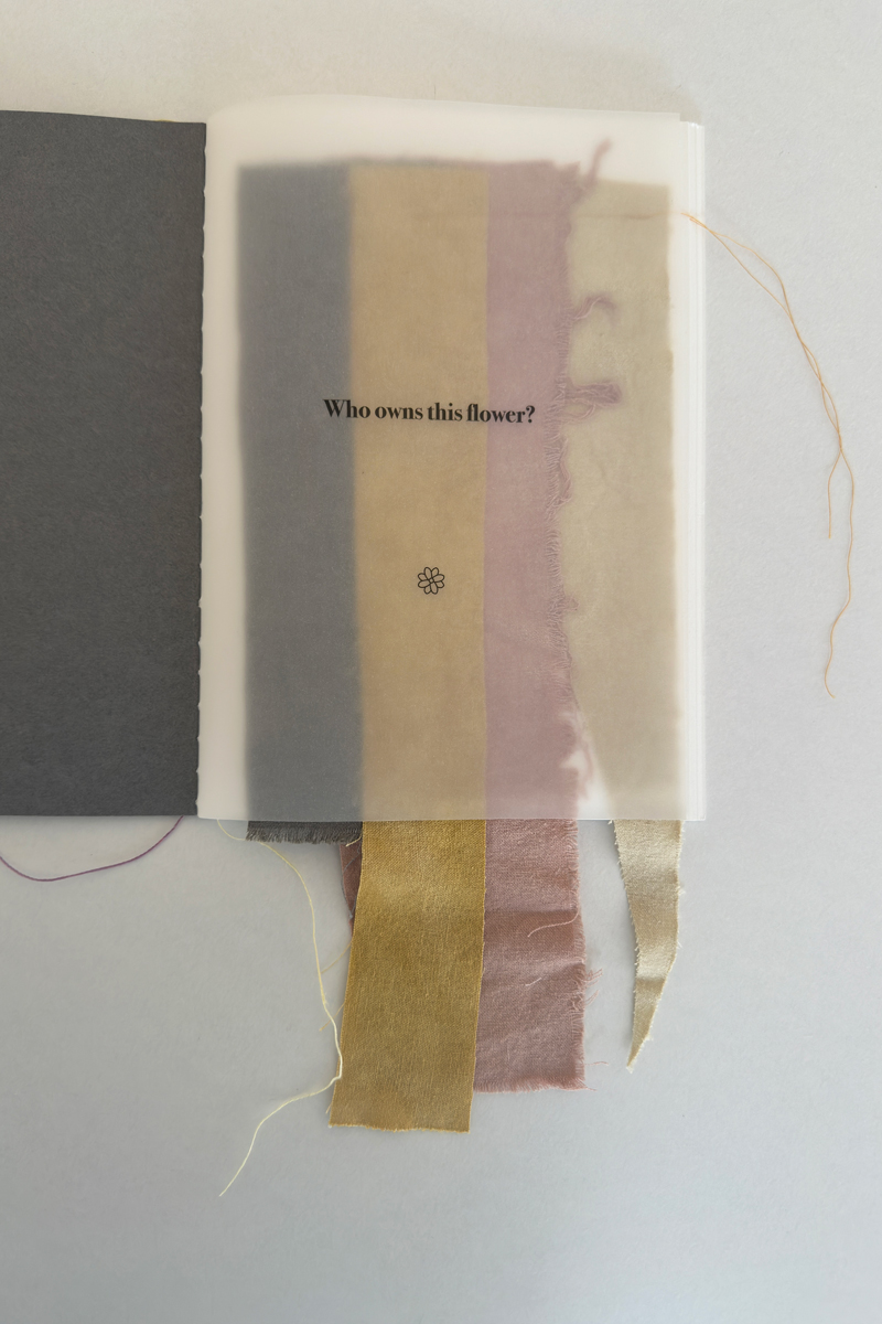 hand sewn artist book comprised of paper, cotton thread, naturally plant dyed silk